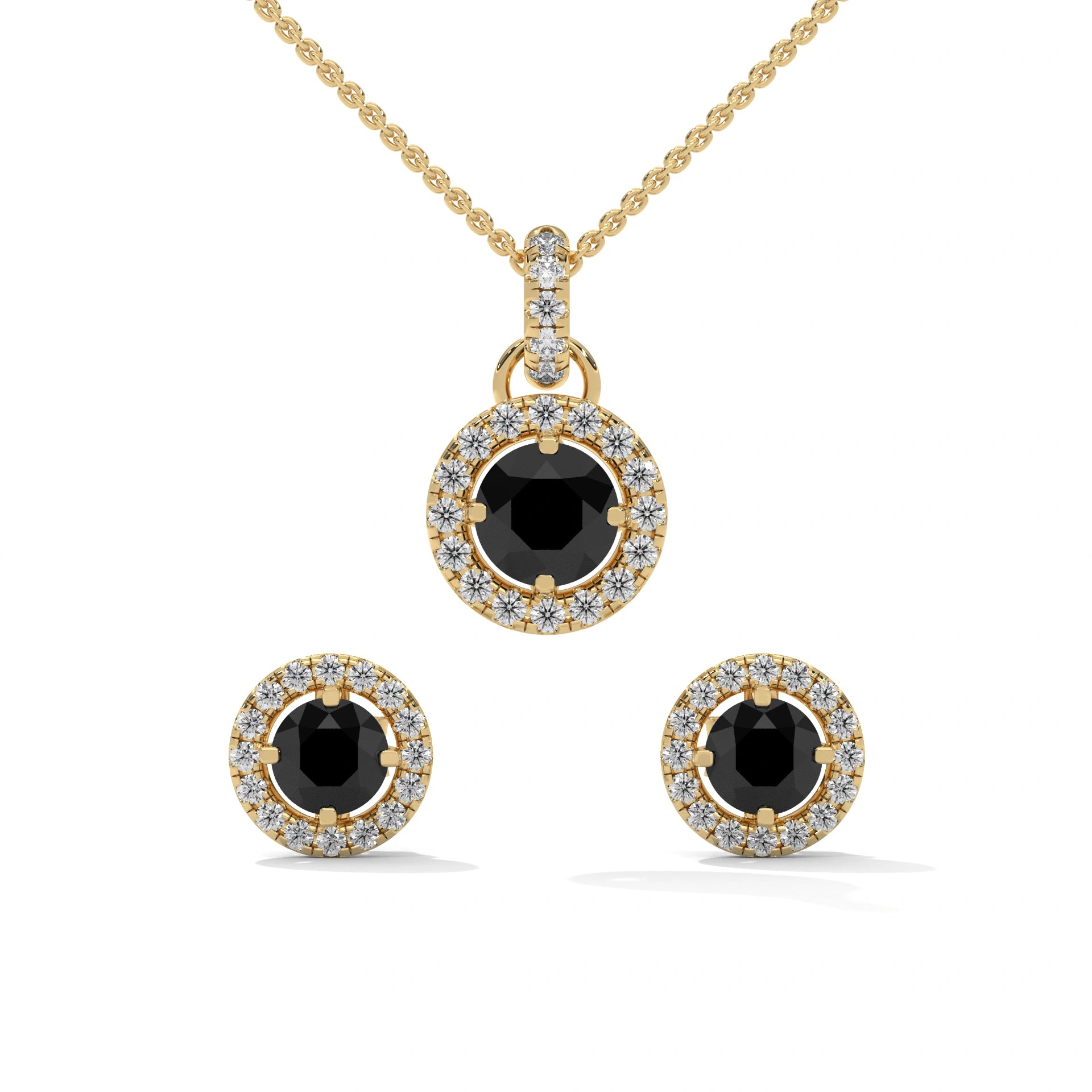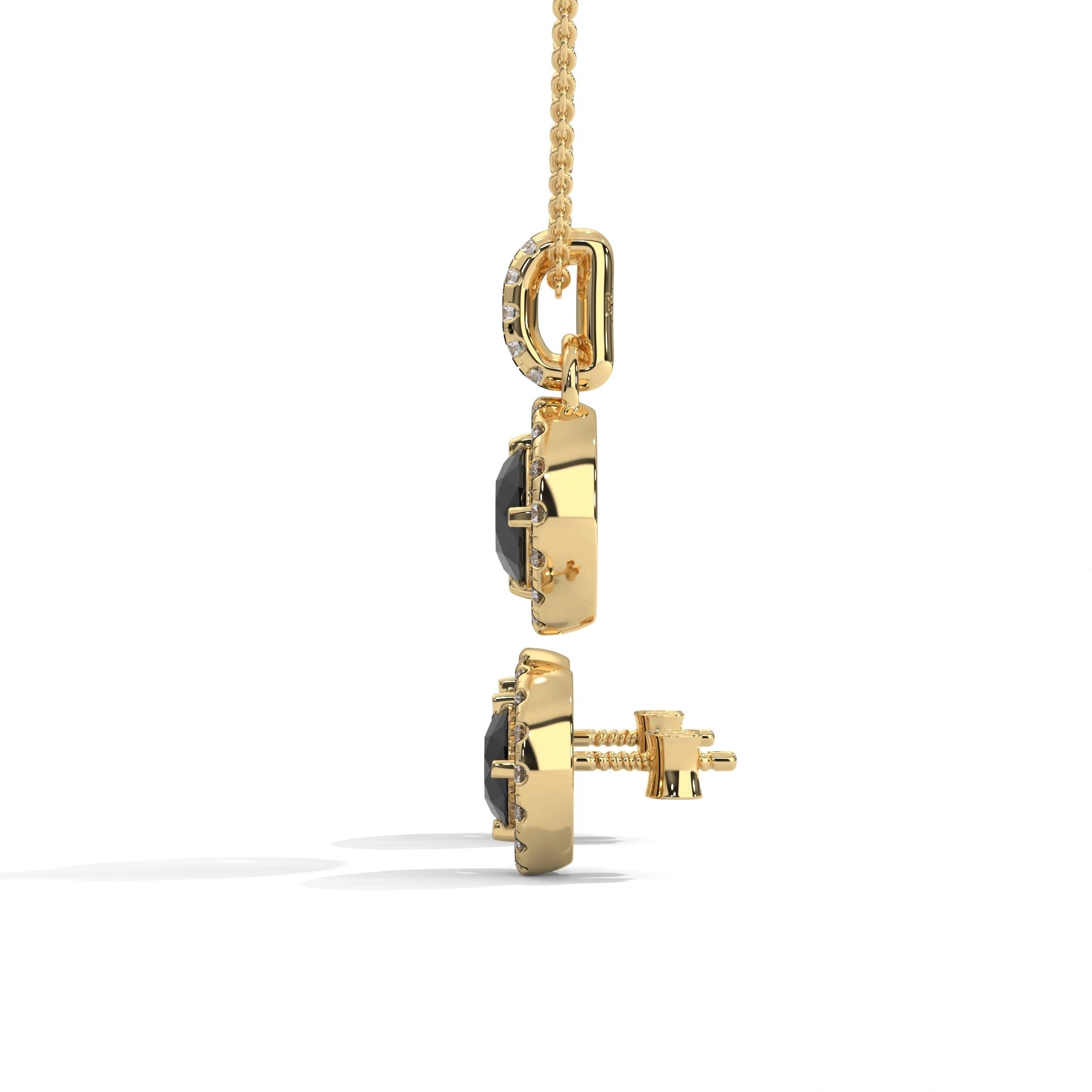 Black Diamond Halo Pendant & Stud Earrings Set in White Gold