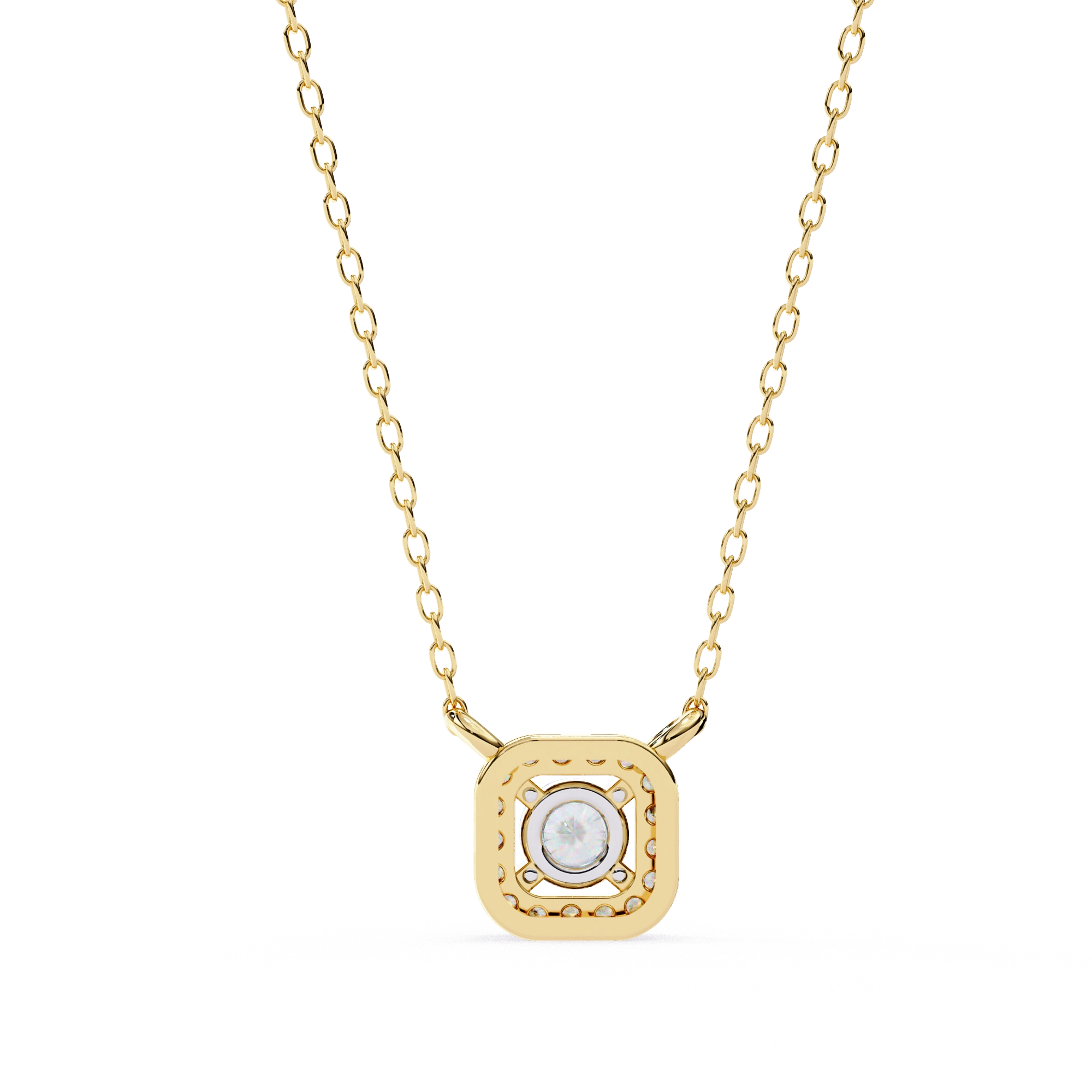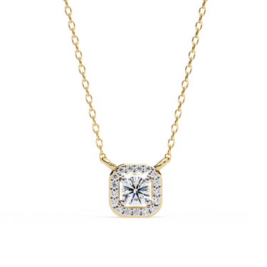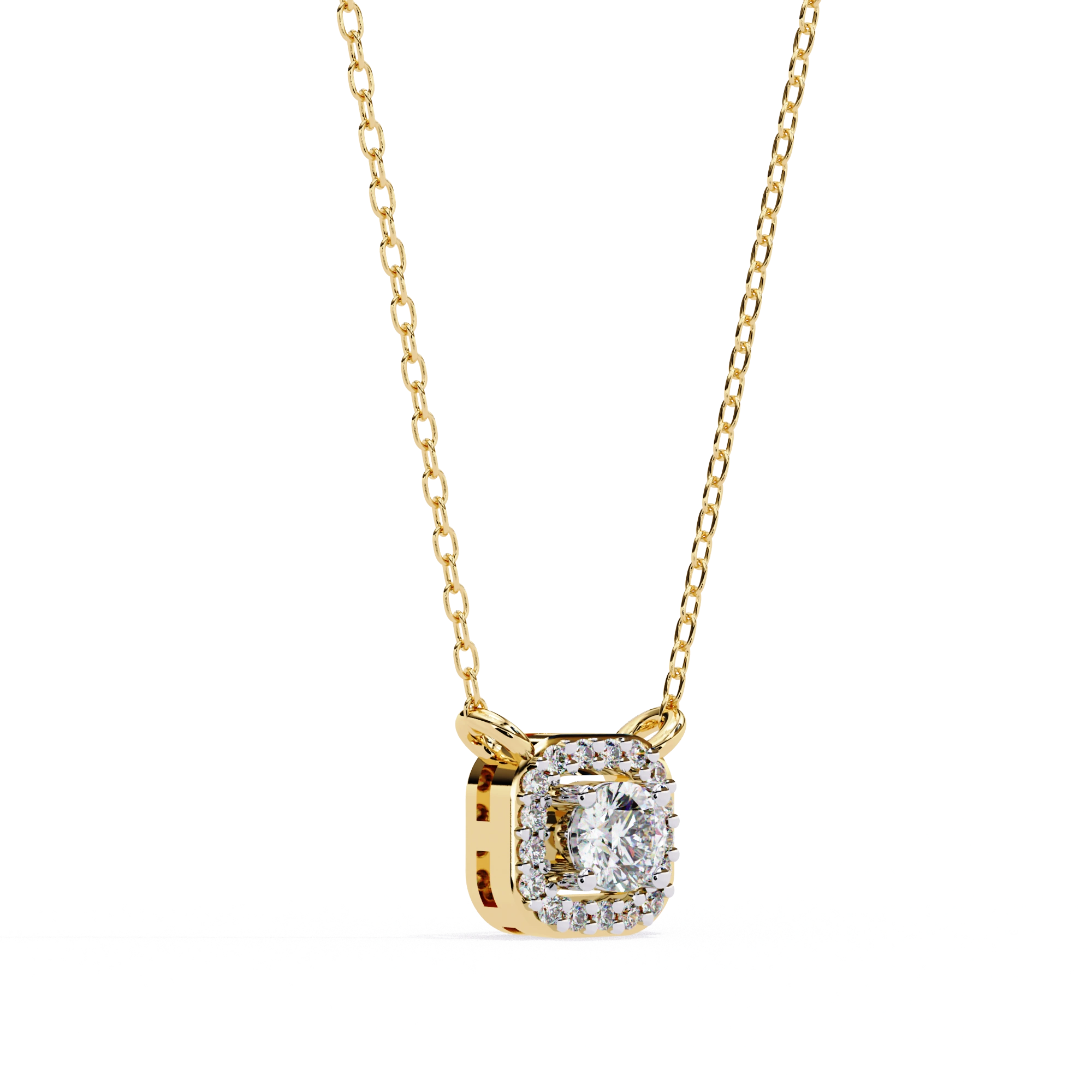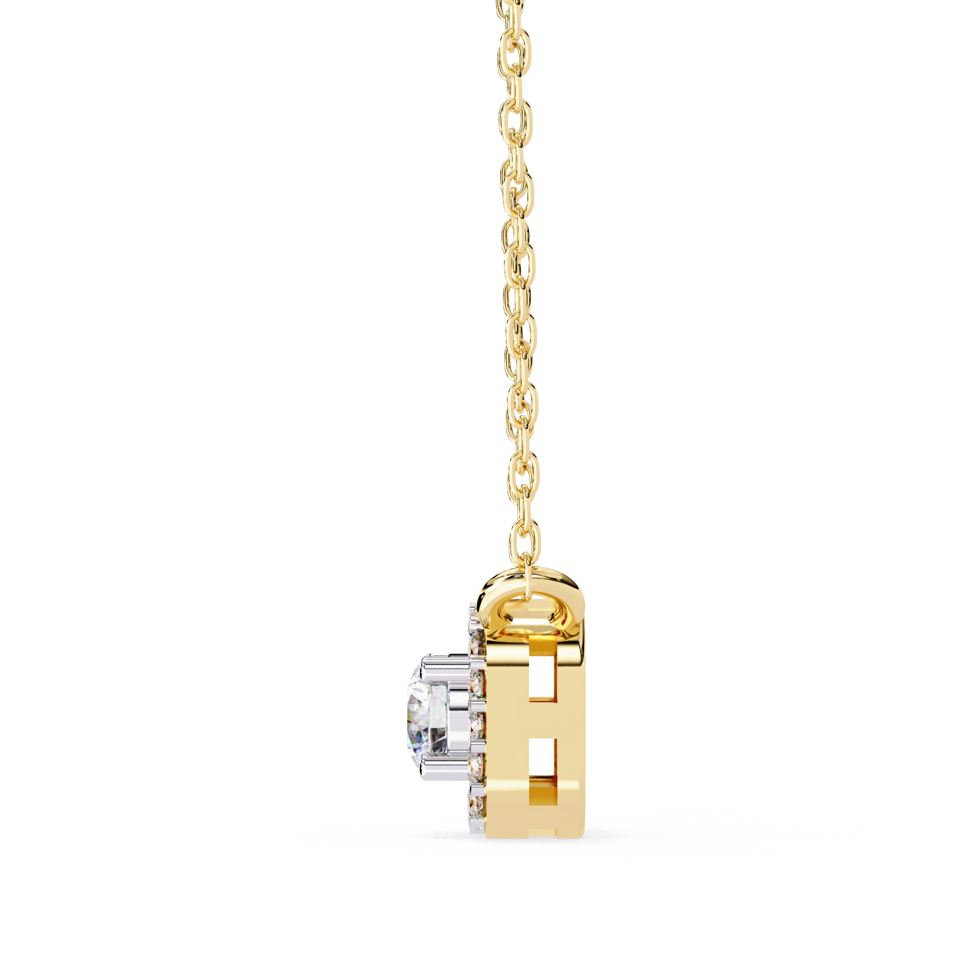 Round Lab Diamond Halo Necklace In Yellow Gold