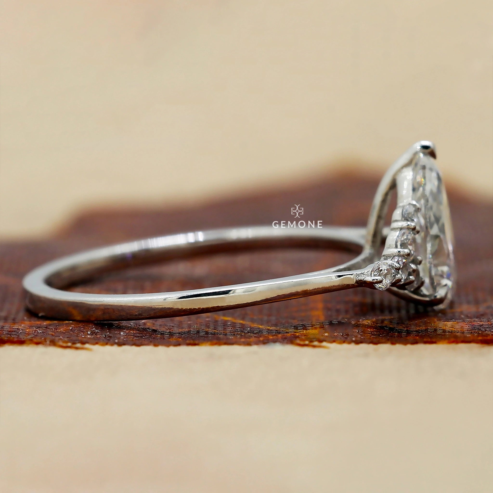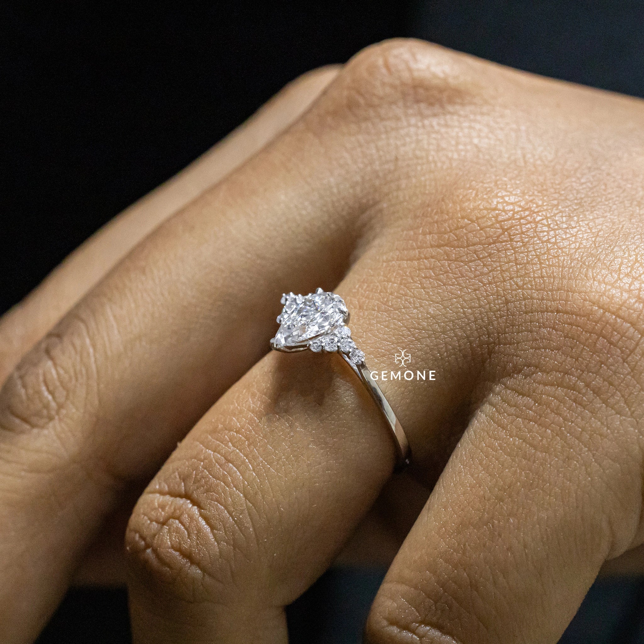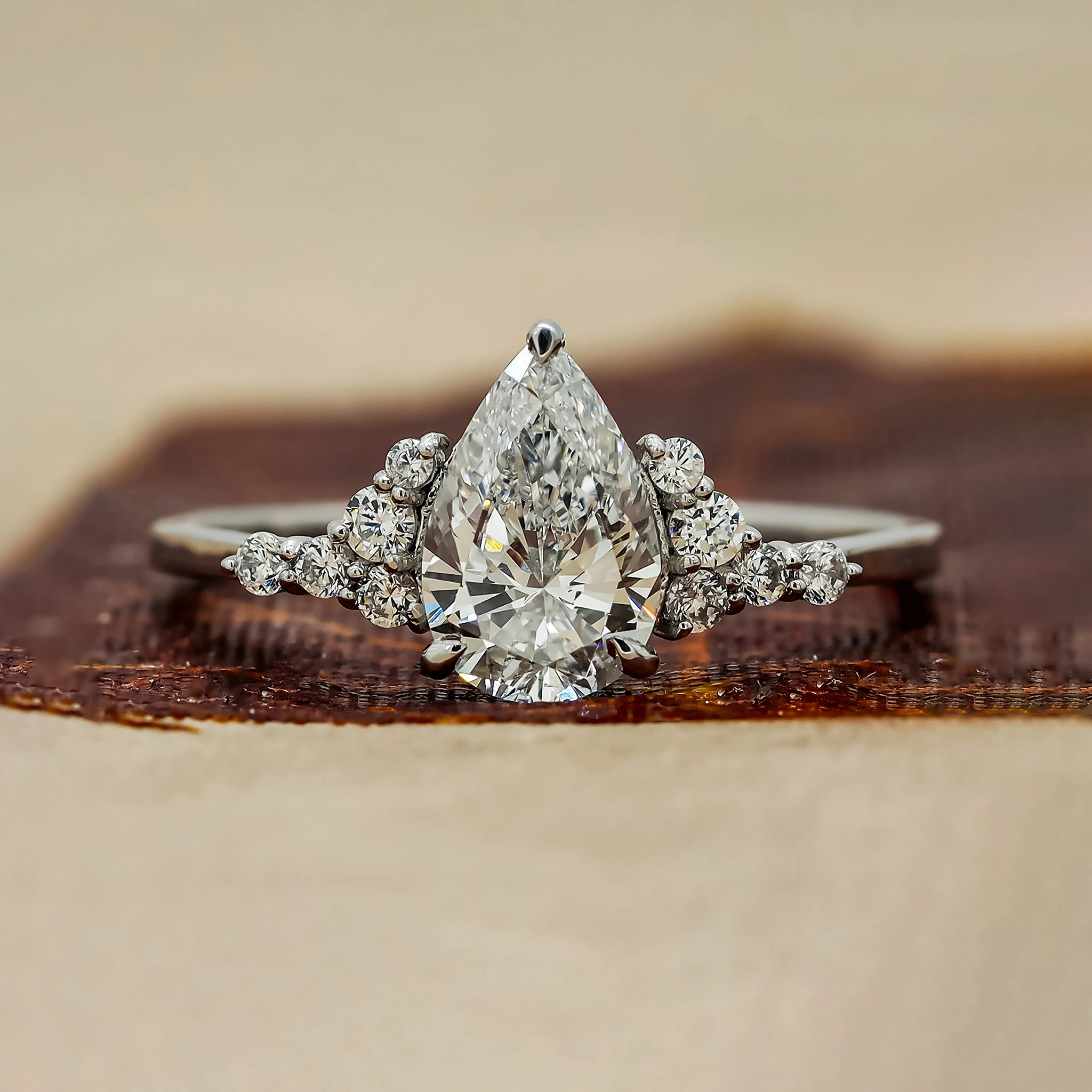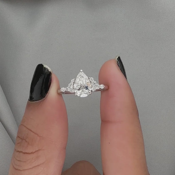 1 Carat Pear Cut Cluster Lab Diamond Engagement Ring