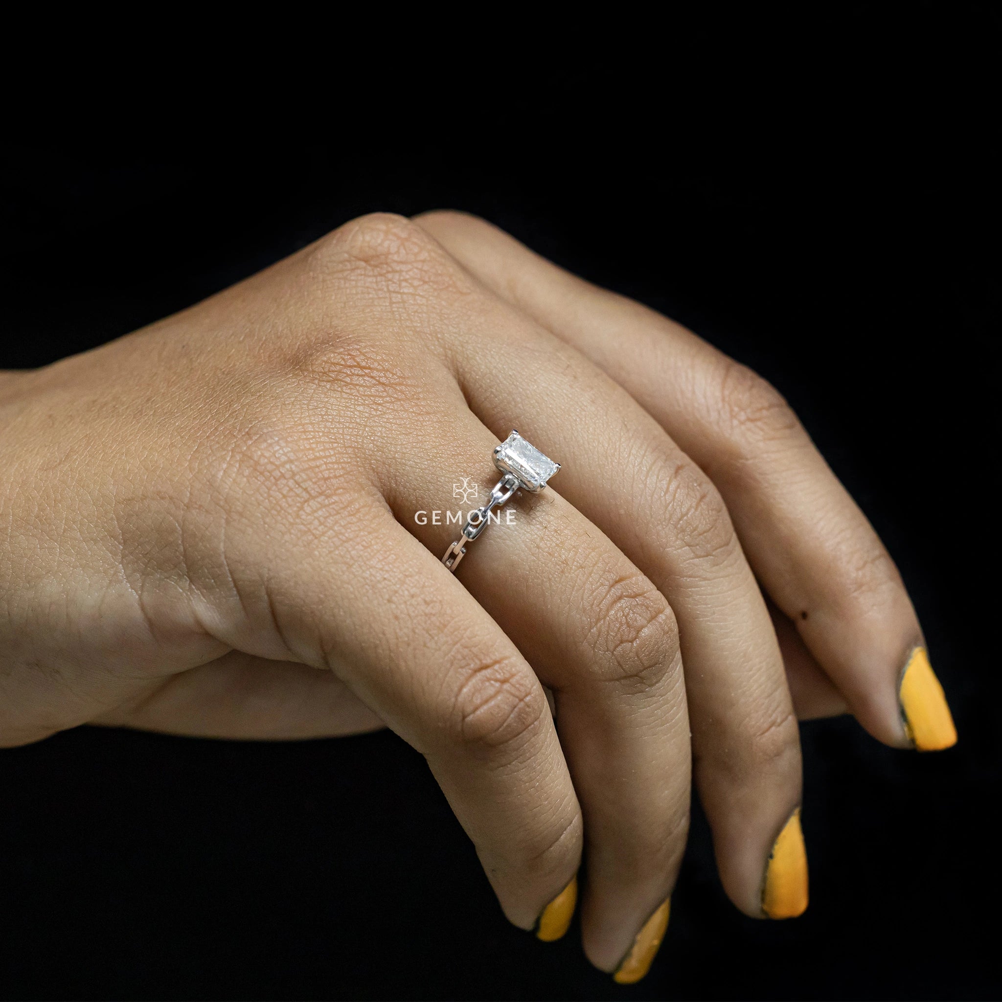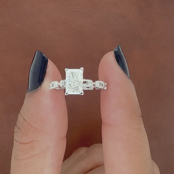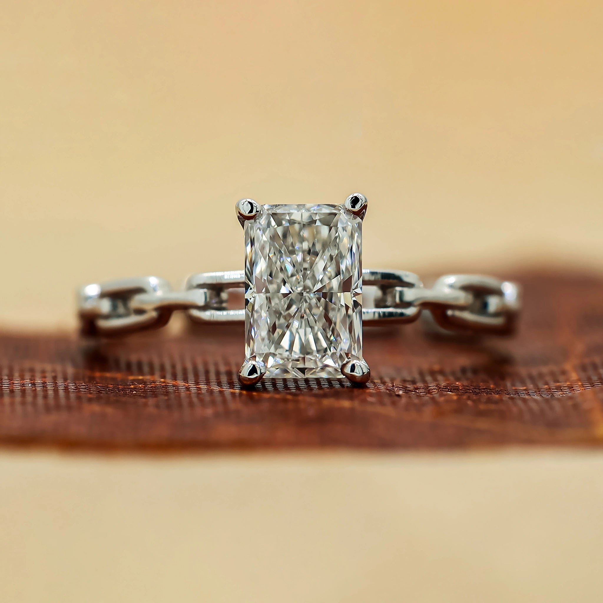 1 Carat Radiant Cut Lab Grown Diamond Cuban Link Ring