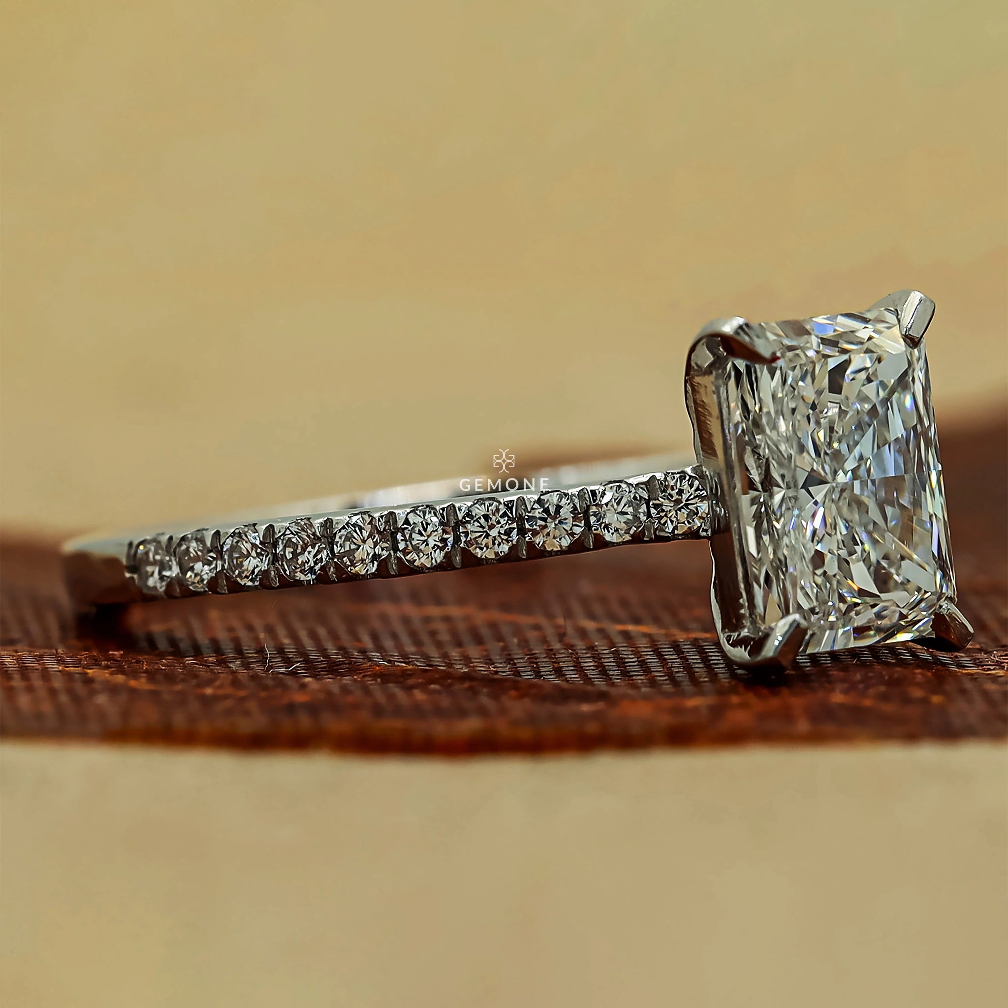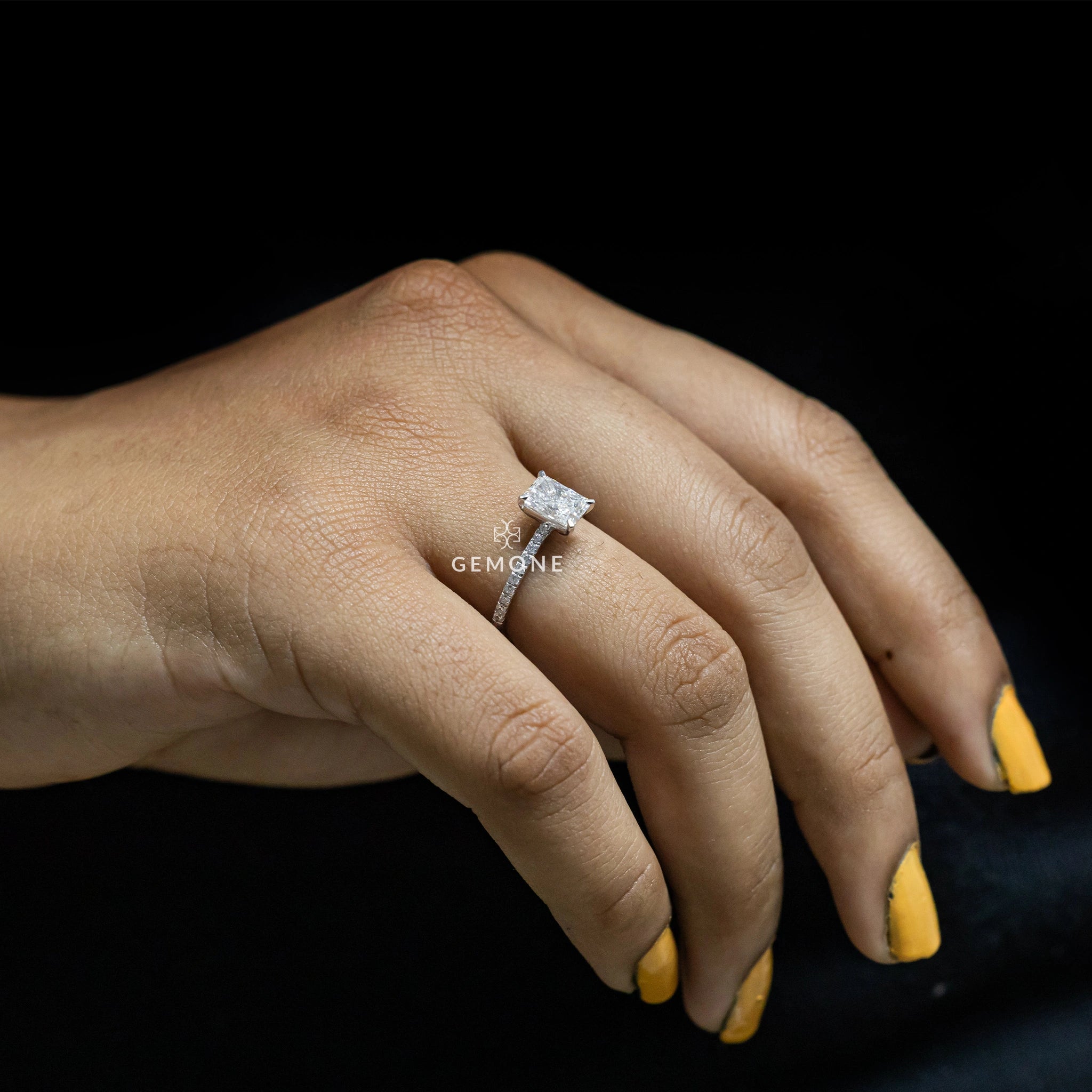 1 Carat Radiant Cut Lab Grown Diamonds Ring With Accents