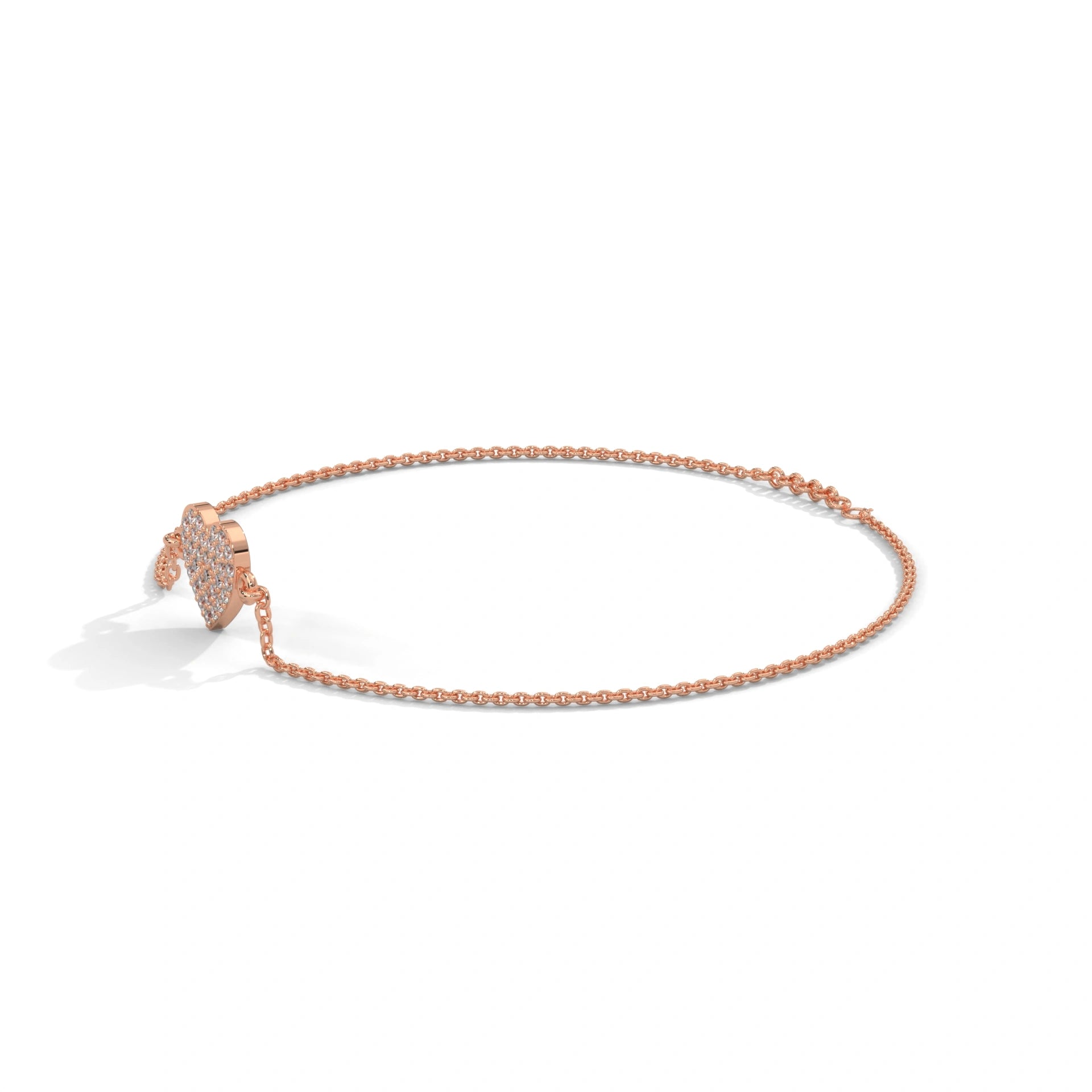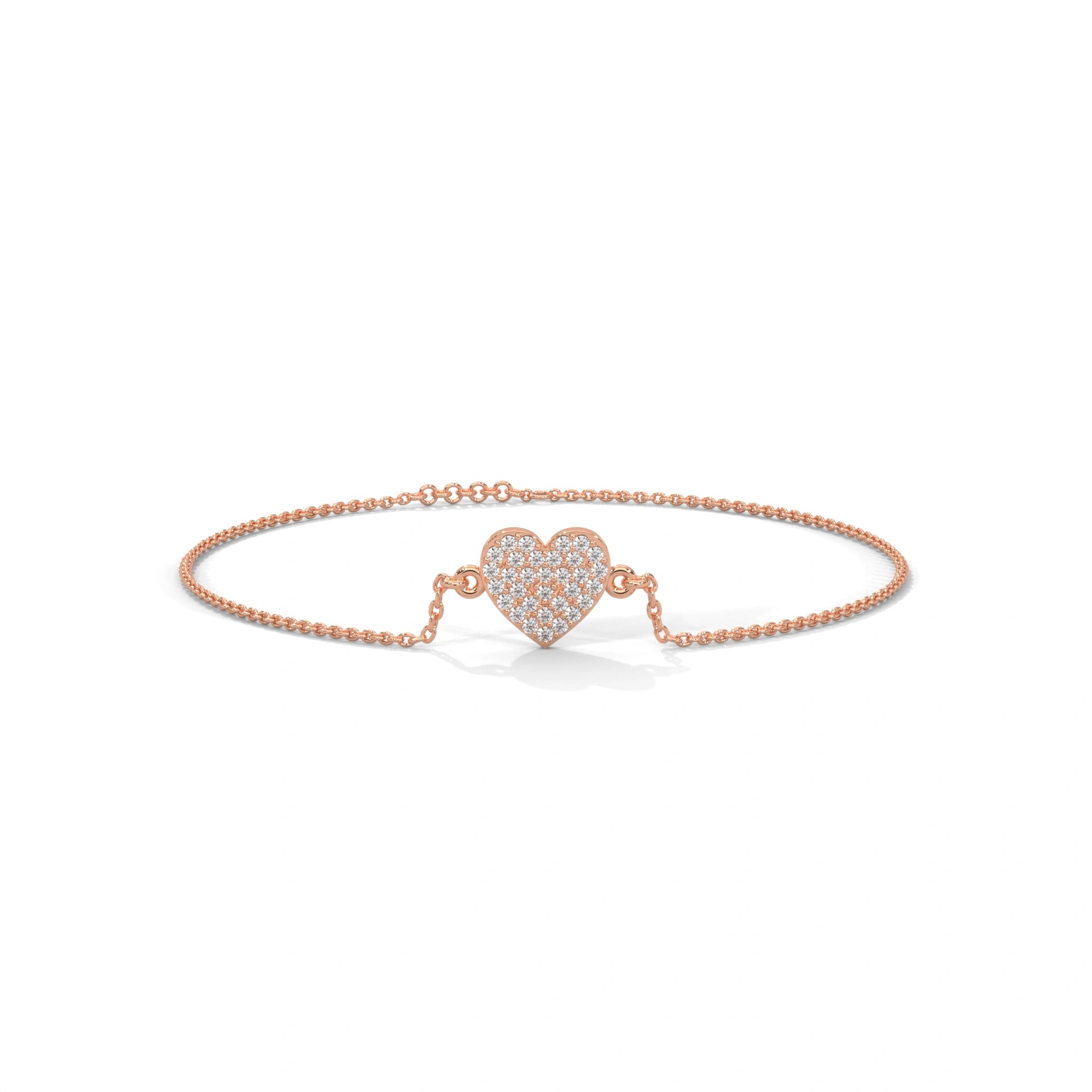 The Heart's Round Brilliant Cut Diamonds Are All Meticulously PavĆ© Set Throughout The Heart Design So That Each Stone Has Its Own Unique Sparkle. This Piece Will Be Elevated To An Exquisite Piece Of Fine Jewelry Thanks To The Warm Tone Of 18K Rose Gold Made This Piece Glorious With Its Soft Glow And Will Be The Perfect Gift For Your Significant Other! The Adjustable Chain Will Allow You To Wear This Piece In Many Different Ways, Therefore It Will Become One Of Your Most Versatile Pieces Of Women’s Diamond Jewelry! If You Desire To Add Length To The Chain Or For Additional Accents The Diamond Gold Bracelets Chain Can Be Custom Made To Each Individual's Personal Style.