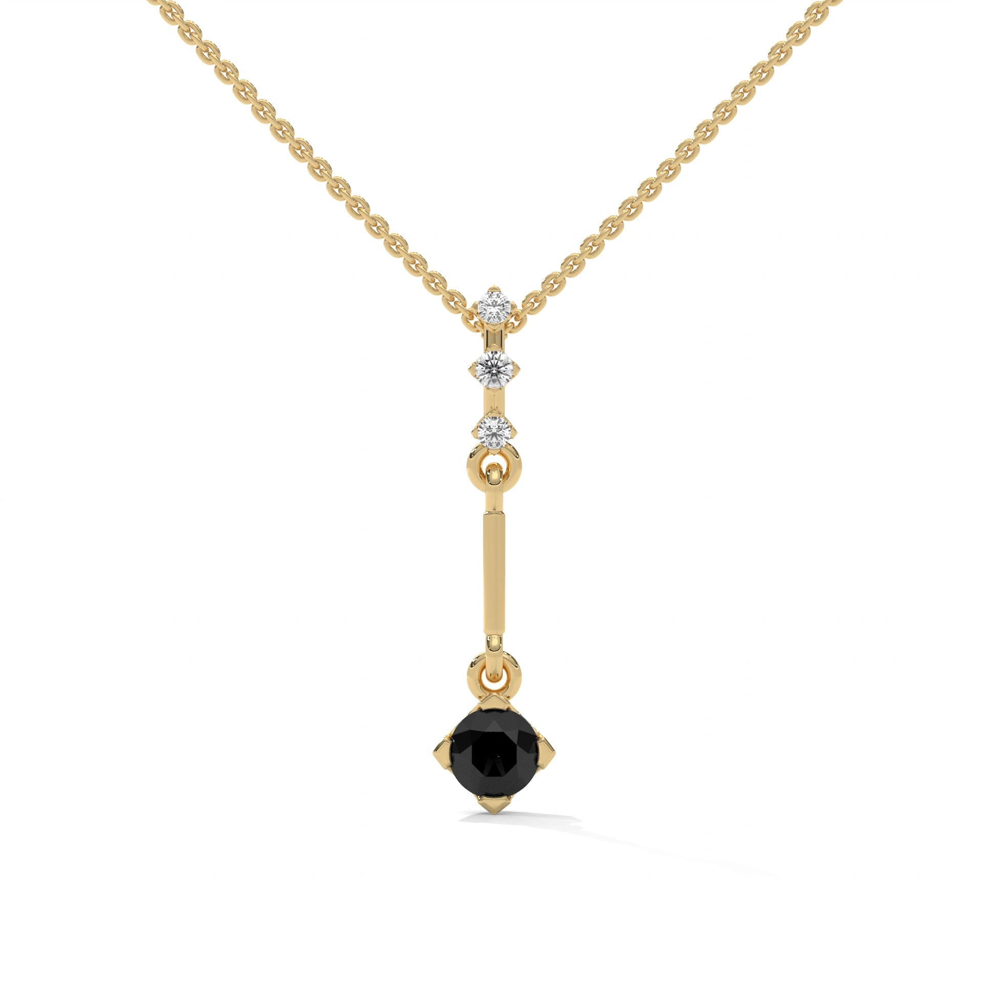 Product: Drop Bar Black Diamond Pendant With White Accents In Yellow Gold
