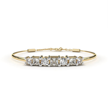 Each Loose Lab Diamond On This Bangle Is A Round Cut And Is Placed Into A Channel Setting To Ensure The Stones Maintain Their Brightness And Hold Their Position While Being Worn. The Combined Carat Weight Of The Stones In The Bracelet Is 0.79 Carats. The High-Quality Cut Provides The Diamonds With Maximum Sparkle. The Yellow Gold Provides A Warm Look That Makes This Bangle Perfect For Wearing Every Day Or At Special Events.