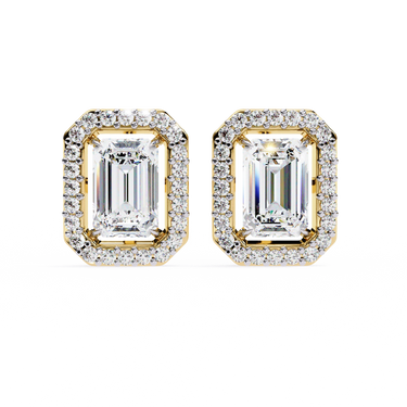 1.9 Carat Emerald Cut Diamond Halo Stud Earrings for Women