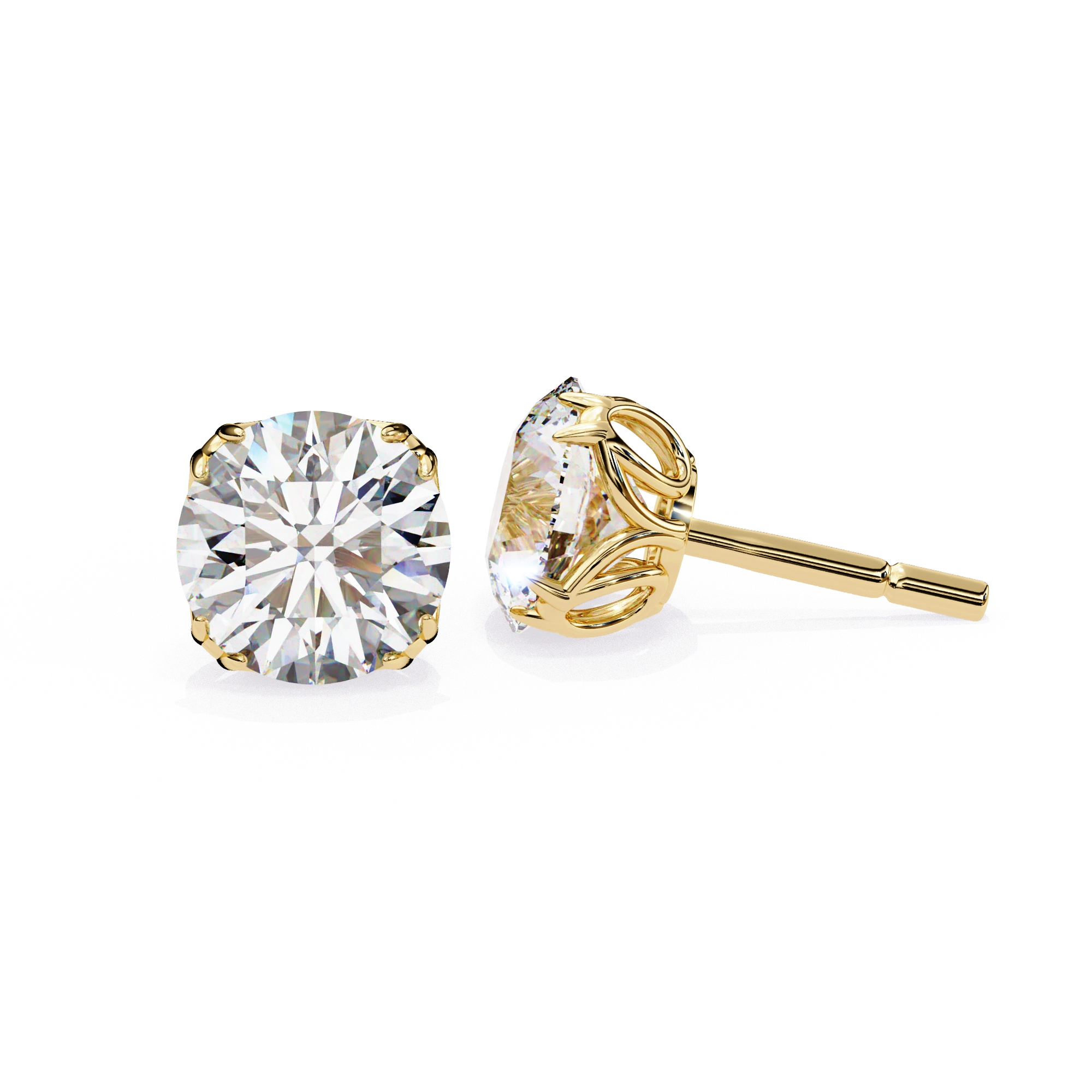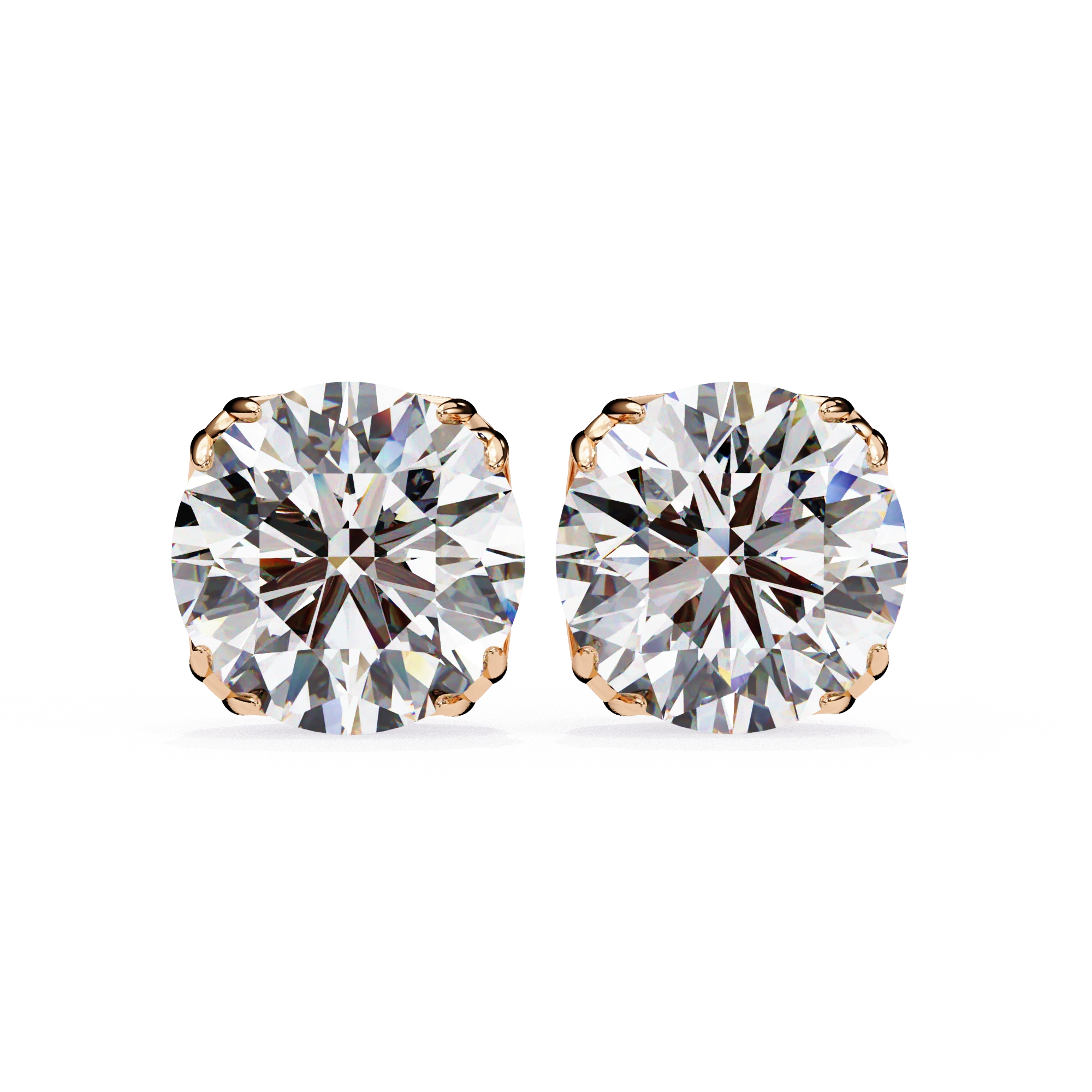 2.6 Carat Round Diamond Stud Earrings with Double Prong Settings