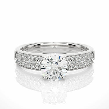 1.15 Ct Round Shaped Three Row Pave Diamond Engagement Ring In Yellow Gold
