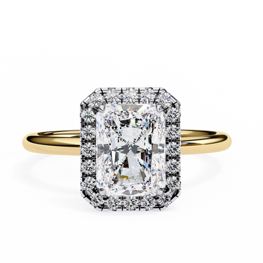 Dazzling, Colorful, And Made With Gorgeous Craftsmanship, Our 2.20 Ct Wt Halo Radiant Cut Engagement Ring Is A Wonderful Cross Between Modern Brilliance And Timeless Style. The Radiant Cut Diamond Has A Brilliant Facet Pattern That possesses the Fire Of A Round Cut And The Clean Geometry Of An Emerald Cut Diamond, Which Will Shine With Unparalleled Brightness. The Shine Of The Center Stone Is Enhanced By The Halo Of Smaller Lab-Grown Diamonds Surrounding It, Reflecting Light From Every Angle.