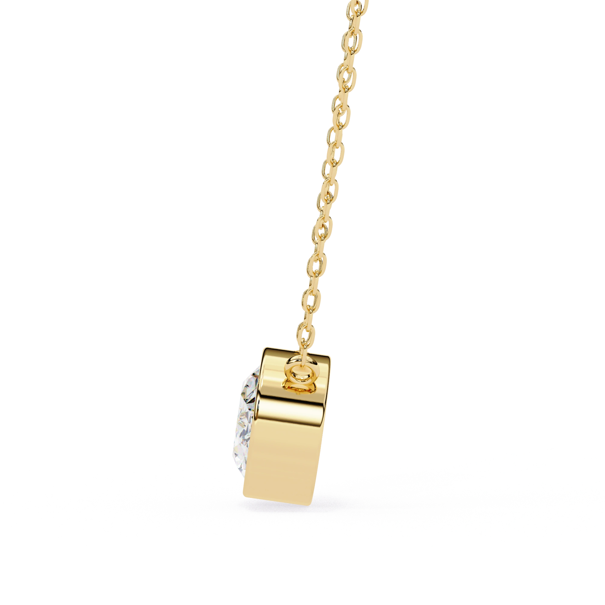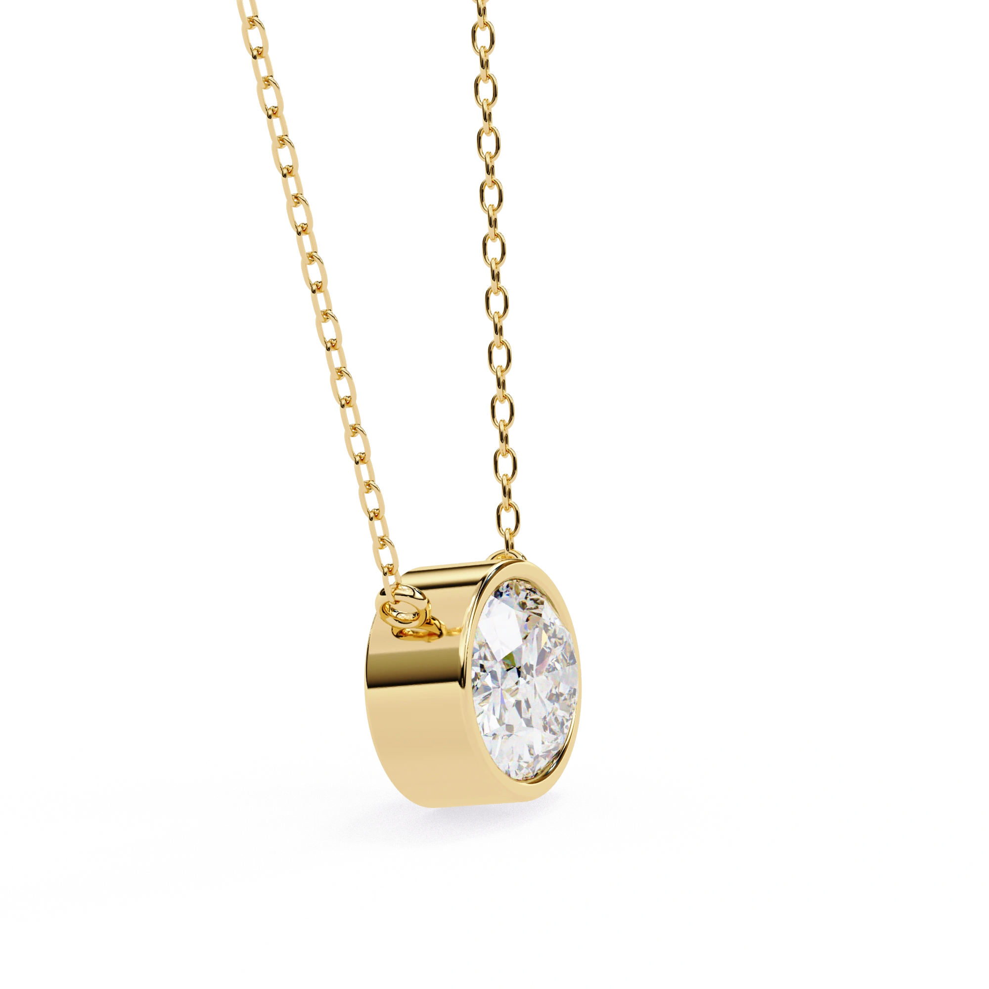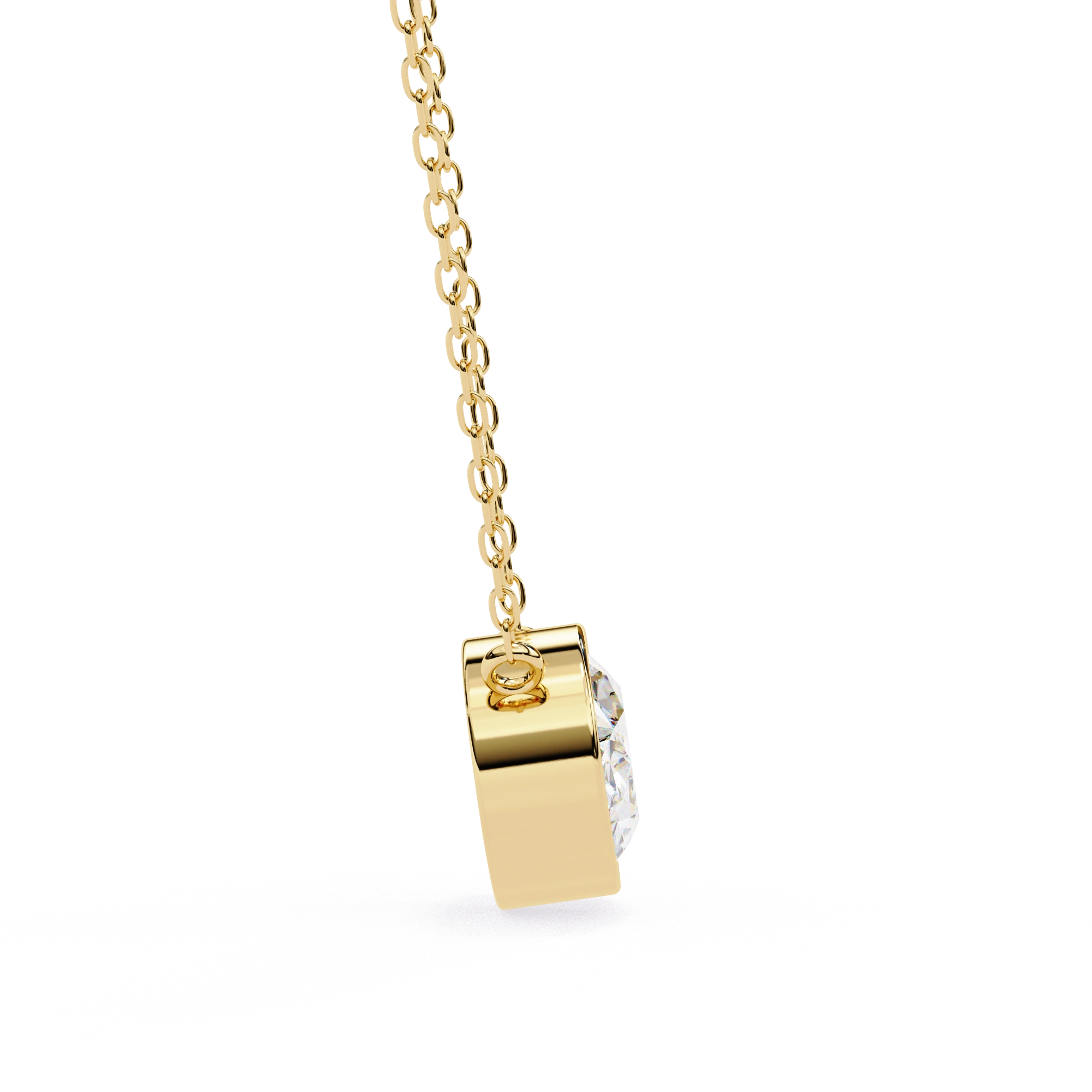 The Diamond Solitaire Pendant Necklace has been set inside the gold bezel completely encircling the diamond with gold, which protects the edges of the diamond while maintaining a secure fit.