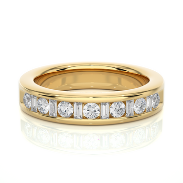 Celebrate Love With A Piece That Shines As Beautifully As Your Bond. This Diamond Wedding Band Brings Together The Sparkle Of Round Cut Diamonds And The Refined Symmetry Of Baguette Cuts, Creating A Perfect Balance Of Brilliance And Sophistication. Each Stone Tells A Story Of Cherished Memories And Promises That Last Forever, Making This Diamond Ring An Ideal Choice For Weddings, Anniversaries, Or Precious Life Moments.