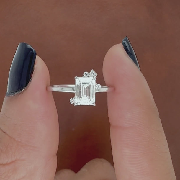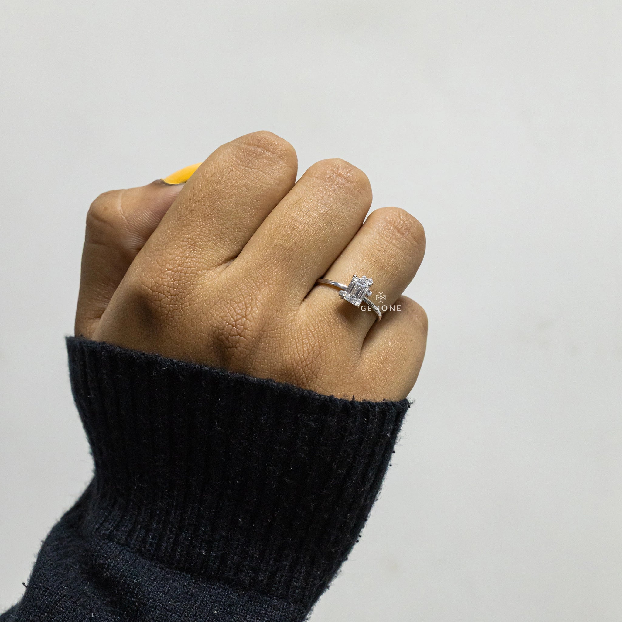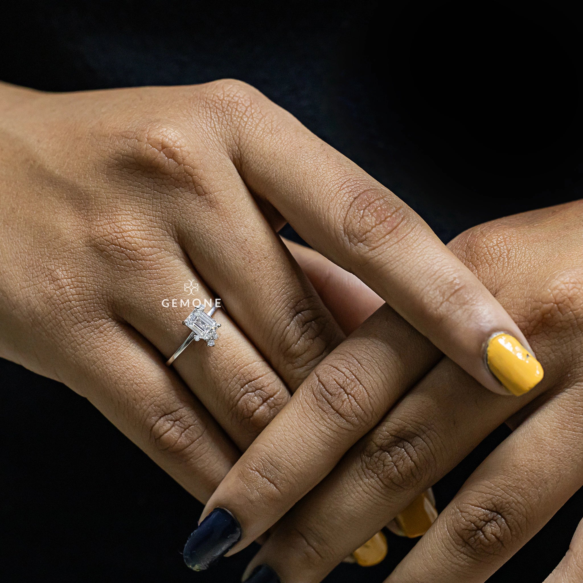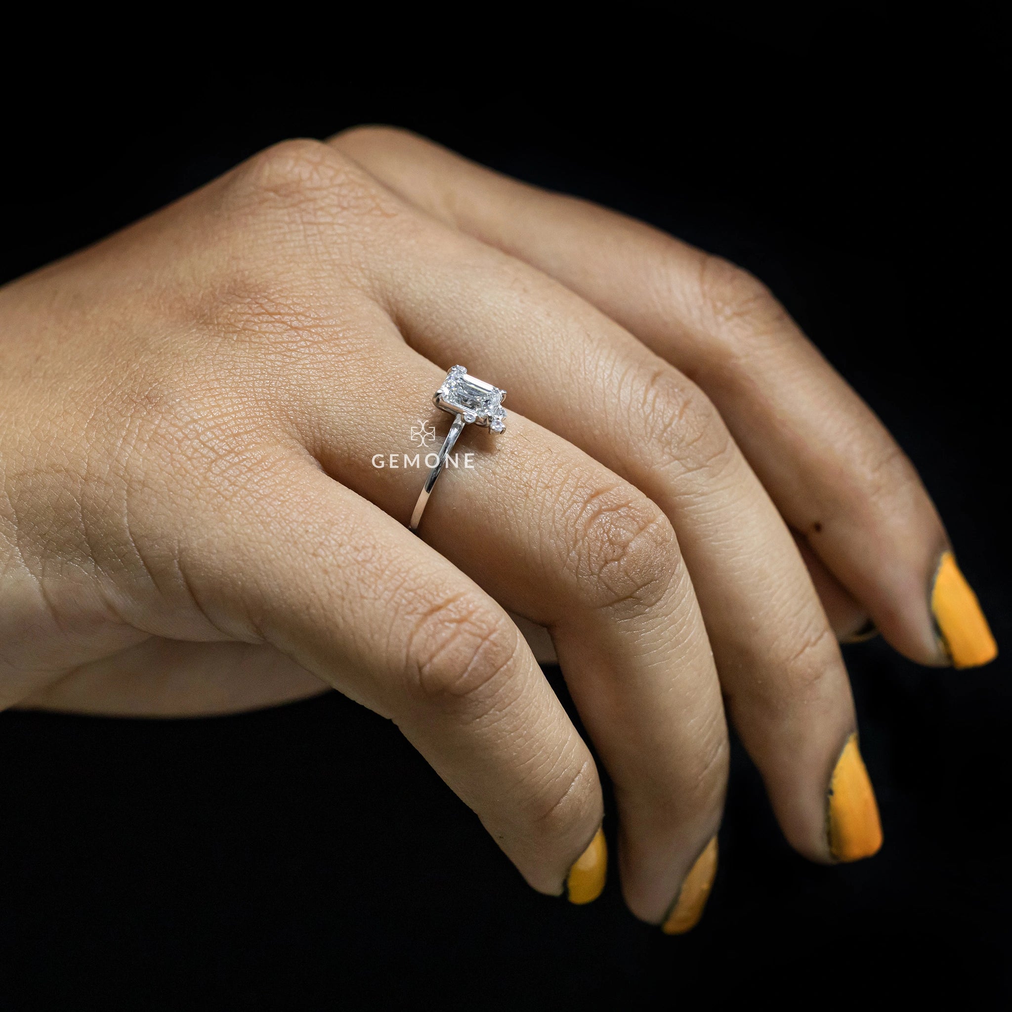 This 1.50 Carat Emerald-Cut Engagement Ring Features A Stunning Five-Stone Design, With A 1 Carat Center Diamond Beautifully Flanked By 0.50 Carat Side Stones For Extra Sparkle. Perfect As A Engagement Ring, A Fine Jewelry Piece, Or A Special Gift For Him. Making This Ring An Exquisite Choice For Anyone Seeking Ethically Sourced Diamond & Fine Jewelry.