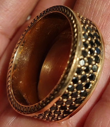 Black diamond eternity wedding band with 14k rose gold
